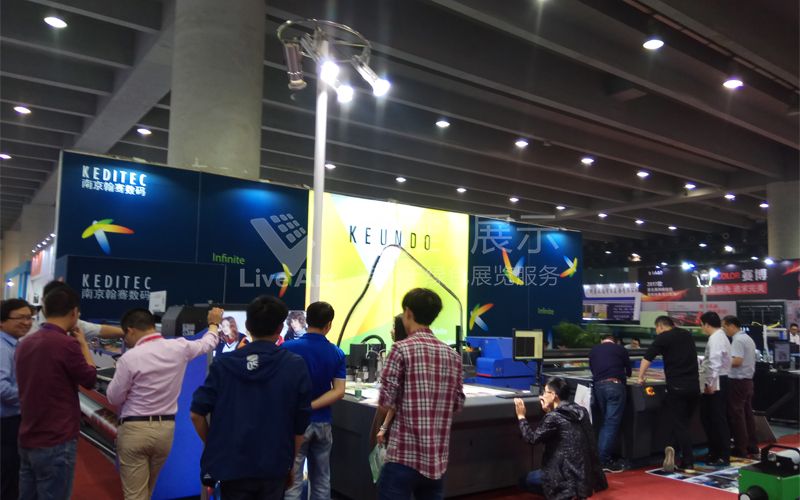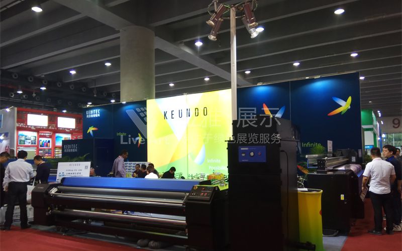 項(xiàng)目背景:KEUNDO、ORIC企業(yè)均是一體化打印技術(shù)綜合性科技企業(yè)。在此次廣告展中兩家公司展位呈背對(duì)背方位。公司產(chǎn)品特性相同,均是大型打印機(jī),立雅展示考慮兩家公司展臺(tái)方位、產(chǎn)品特性、參展成本等因素。以熱轉(zhuǎn)印布飾結(jié)合鋁型材做超大面積背墻。背墻中部以燈箱形式展現(xiàn)。展臺(tái)設(shè)計(jì)與產(chǎn)品相襯托,大氣風(fēng)格即刻體現(xiàn),給人大品牌展位既視感。