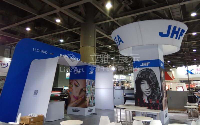 項(xiàng)目背景:JHF是一家從事研發(fā)、制造并銷售廣告印刷和工業(yè)印刷領(lǐng)域高品質(zhì)的噴墨打印設(shè)備的企業(yè)。JHF展位則采用立體結(jié)構(gòu),以異性門(mén)頭+弧形吊頂?shù)目炷恍銟?gòu)建,高品質(zhì)的熱轉(zhuǎn)印布質(zhì)搭配工業(yè)拉鏈構(gòu)成展位展示畫(huà)面,快幕秀的彈簧卡扣設(shè)計(jì)、彈力繩連接設(shè)計(jì)、多段式支撐桿設(shè)計(jì)、底腳穩(wěn)定設(shè)計(jì)及具備可彎曲性(呈90度彎頭)的特性使JHF展位呈現(xiàn)高端大氣的大品牌展位既視感。