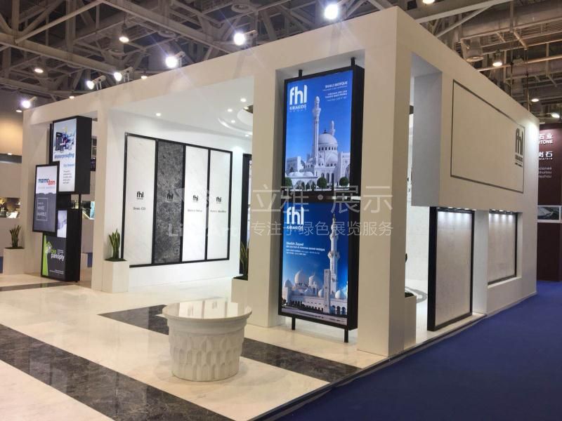 此次廈門石材展展臺搭建主要展現(xiàn)鋁型材與高清熱轉(zhuǎn)印布飾的完美結(jié)合,傳統(tǒng)木結(jié)構(gòu)造型與熱轉(zhuǎn)印布高精畫面的完美展現(xiàn)。方正簡潔的展臺搭建造型也能搭建出大品牌展位既視感,時尚大氣而不失平庸,并趨向國際化現(xiàn)代展臺設(shè)計風格。立雅以“誠信”為原則,以“客戶需求”為中心,為客戶提供量身定制的展臺設(shè)計搭建方案,廣州立雅,您身邊的展覽管家!