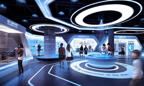 ④空間的引導(dǎo)和暗示。利用空間引導(dǎo)觀眾的流動,主要取決于空間構(gòu)成的巧妙暗示。在企業(yè)展廳設(shè)計中,應(yīng)盡可能安排信息指示系統(tǒng)。如果空間處理得當(dāng),人們可以在不經(jīng)意間沿著一定的路線行走。設(shè)計師可以利用空間的隔斷、出入口和通道來引導(dǎo)和暗示觀眾,也可以利用空間的大小、明暗、密度等方法發(fā)揮同樣的作用??臻g的大小會給人一種不同的開放和約束的感覺。